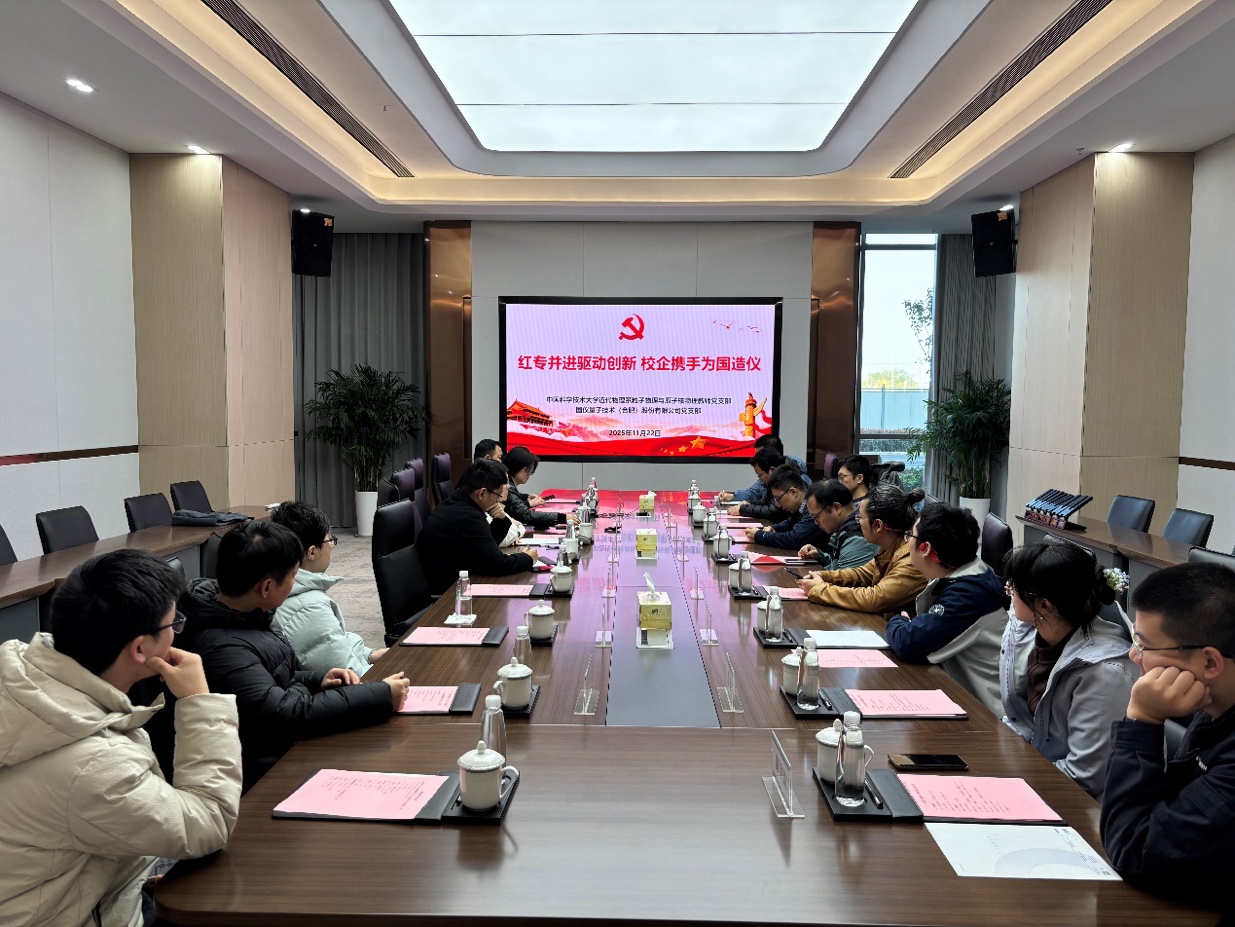 2025年11月22日上午,我室教师党小组与国仪量子技术(合肥)股份有限公司党支部在合肥市高新区量子科仪谷组织开展“红专并进驱动创新、校企携手为国造仪”联合主题党日活动。本次活动紧扣四中全会关于“十五五”时期实现科技自立自强的重要部署,旨在通过支部共建探索校企协同新机制,搭建产学研融合新平台,共同服务高水平科技自主自强。支部书记王鹏飞同志、国仪量子技术(合肥)股份有限公司党支部书记贺成芬同志、中国科大毕业生代表贺羽董事长,及我室党小组十多名科研骨干参与了此次活动。