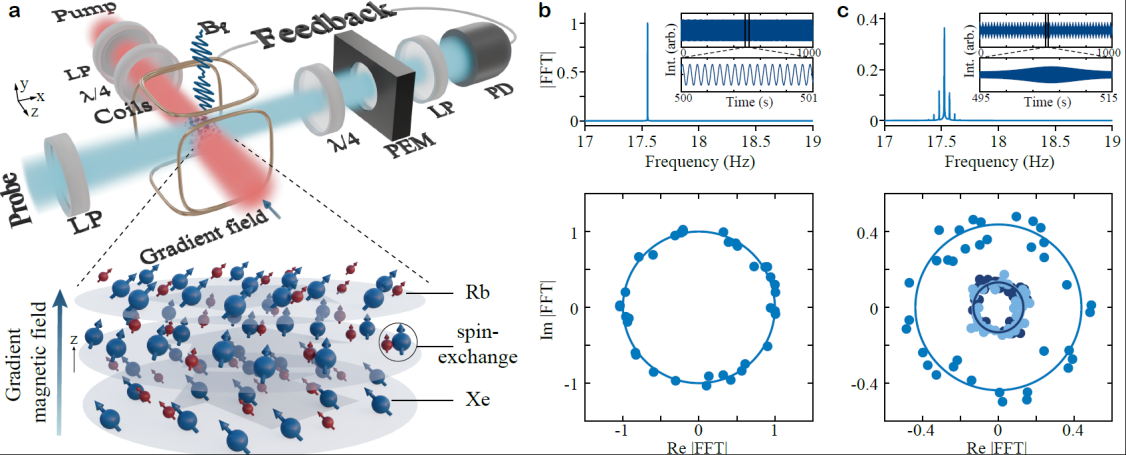 近日,我室彭新华教授、江敏教授及其合作者在时间晶体研究领域取得突破性进展,首次在核自旋体系中实验观测到连续时间晶体与连续时间准晶体,并揭示了其丰富的动力学相变行为。该体系具备长时间相干振荡特性,在量子精密测量领域展现出潜在应用前景。相关研究成果以《Observation of continuous time crystals and quasi-crystals in spin gases》为题,发表于《自然·通讯》(Nature Communications)。